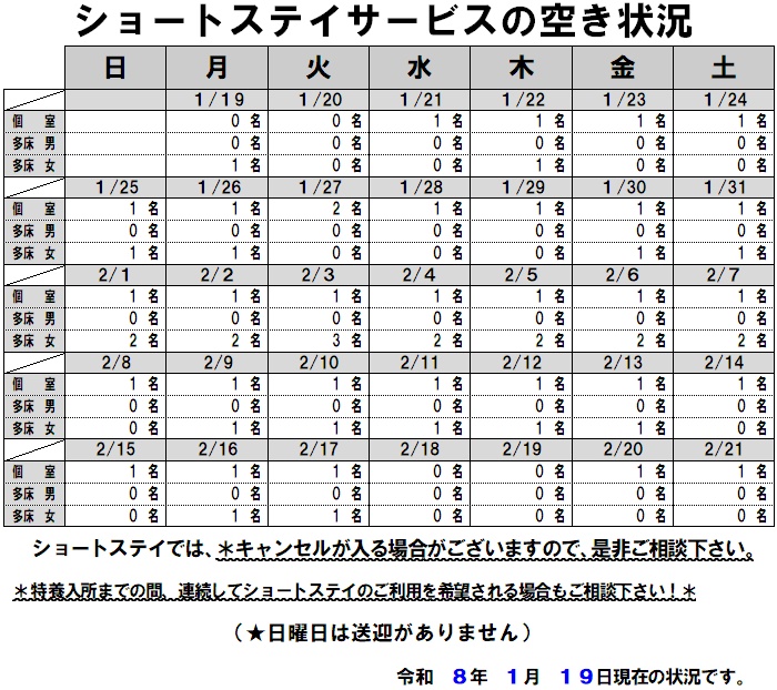 | ショートステイ | 1日分:300円~4,452円(別途いただく費用はありません) |